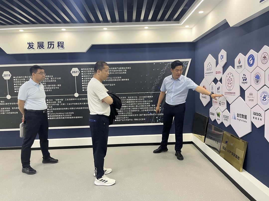 仪式结束后,西安电子科技大学领导及负责人前往鸣启数字科技展厅进行参观,详细了解鸣启发展建设规划,使校企双方携手共促人才培养。